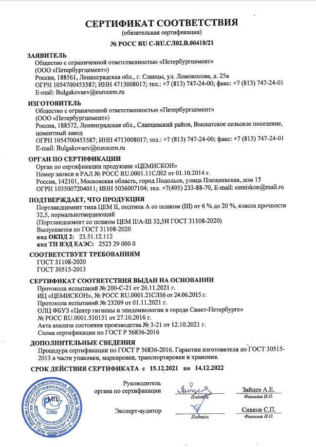 Цемент ПЦ 400 Д20 имеет марку прочности 32,5, что позволяет использовать его для строительства различных объектов. Он отлично смешивается с вяжущими материалами и водой, что обеспечивает превосходную адгезию и стойкость к различным нагрузкам.