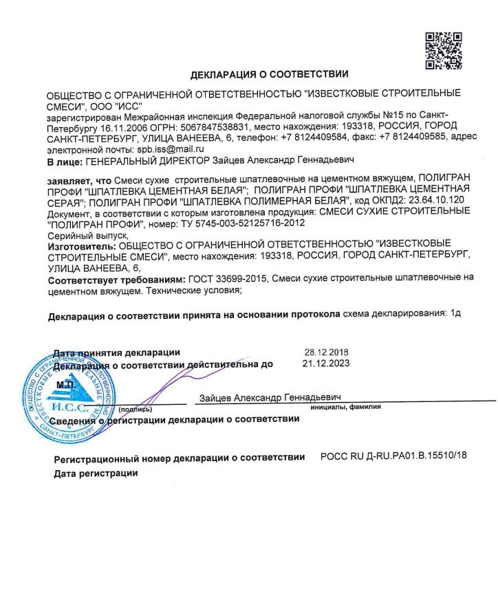 Шпатлевка ПОЛИГРАН ПРОФИ имеет высокую прочность и долговечность, не сколачивается и не трескается со временем. Она также устойчива к воздействию влаги, что делает ее идеальным выбором для использования в ванных комнатах и кухнях.