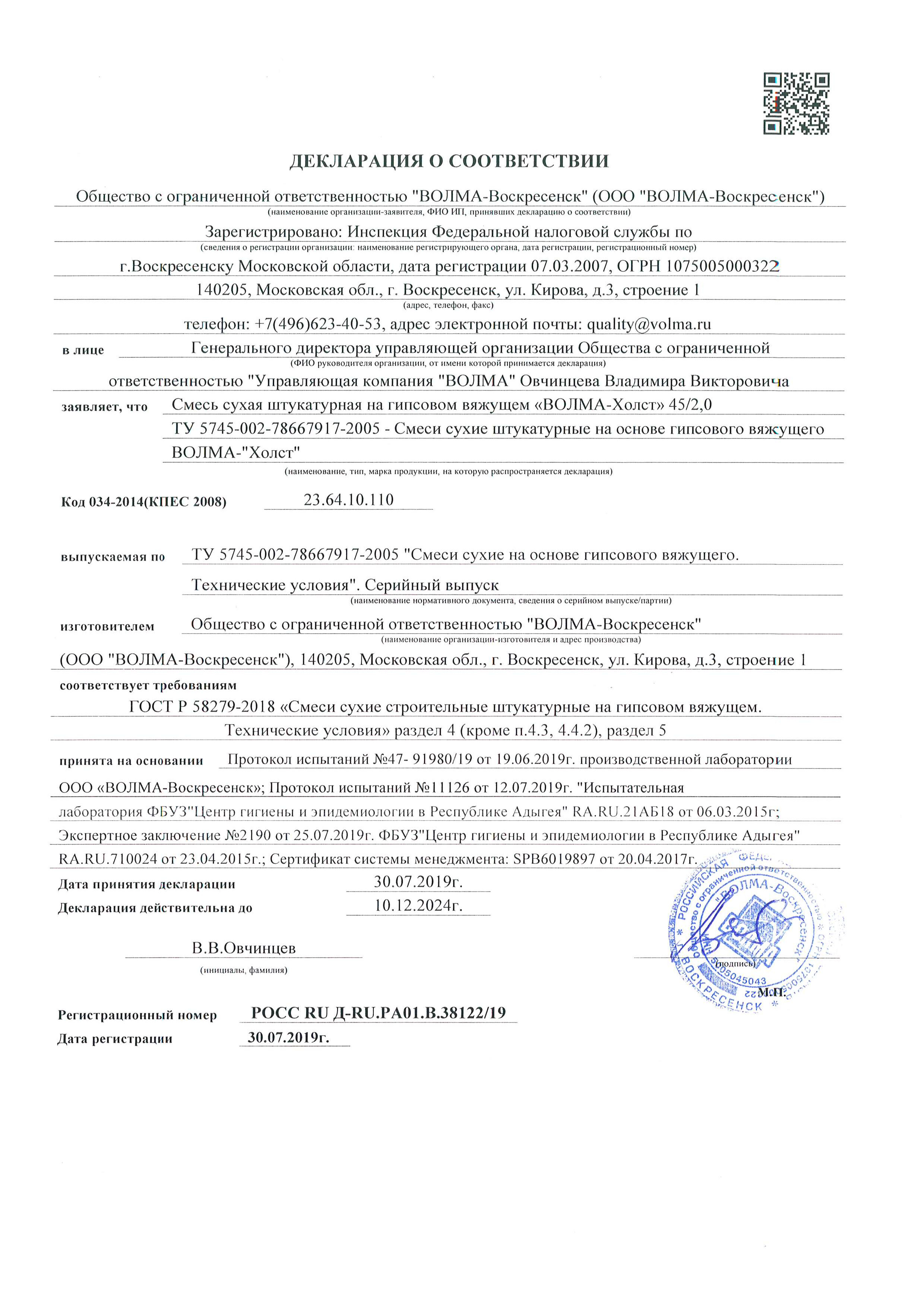 Декларация соответствия РОСС RU Д-RU.РА01.В.37004/19